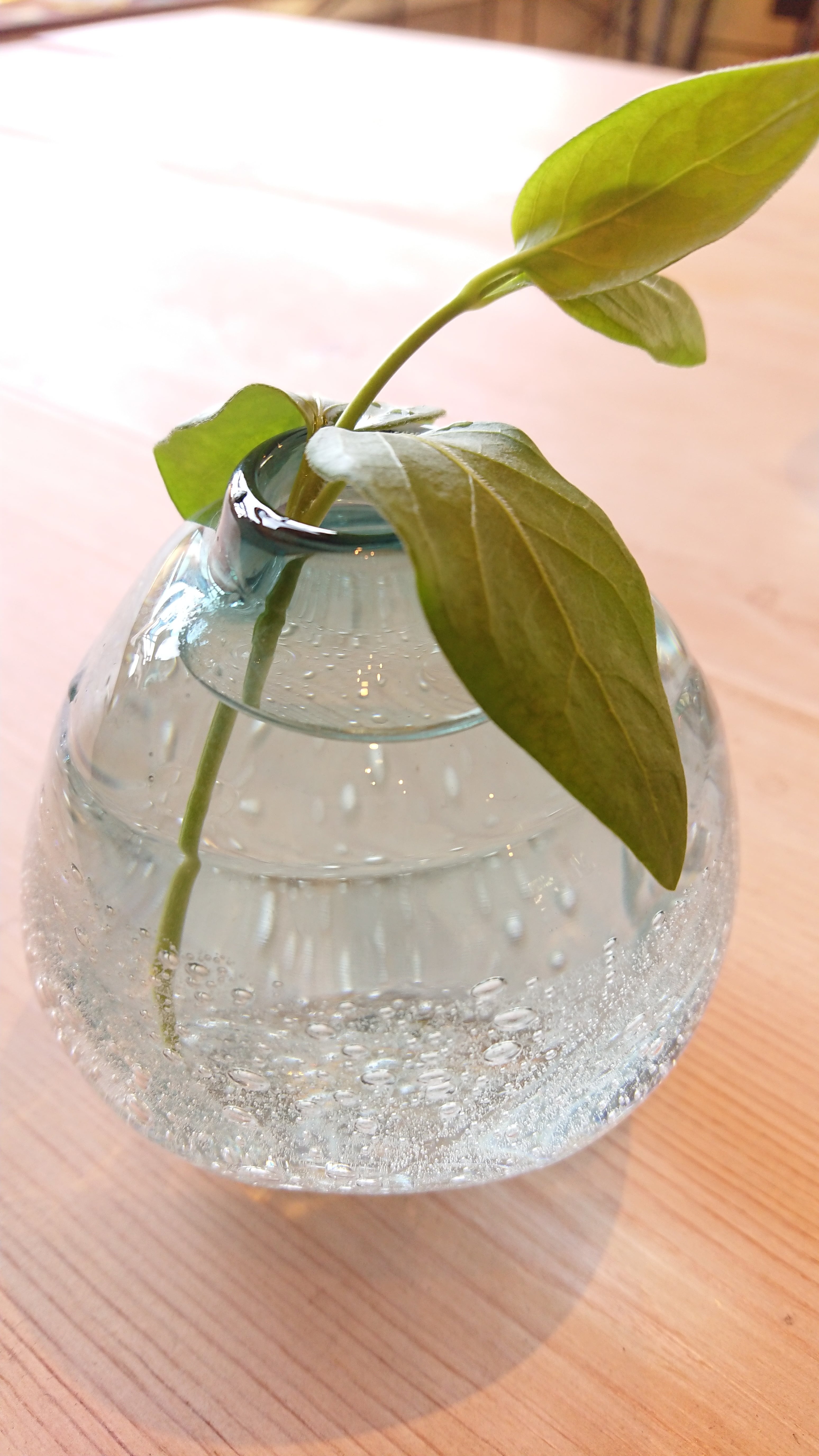気泡がいれてある涼やかなこぶりの一輪挿しです。