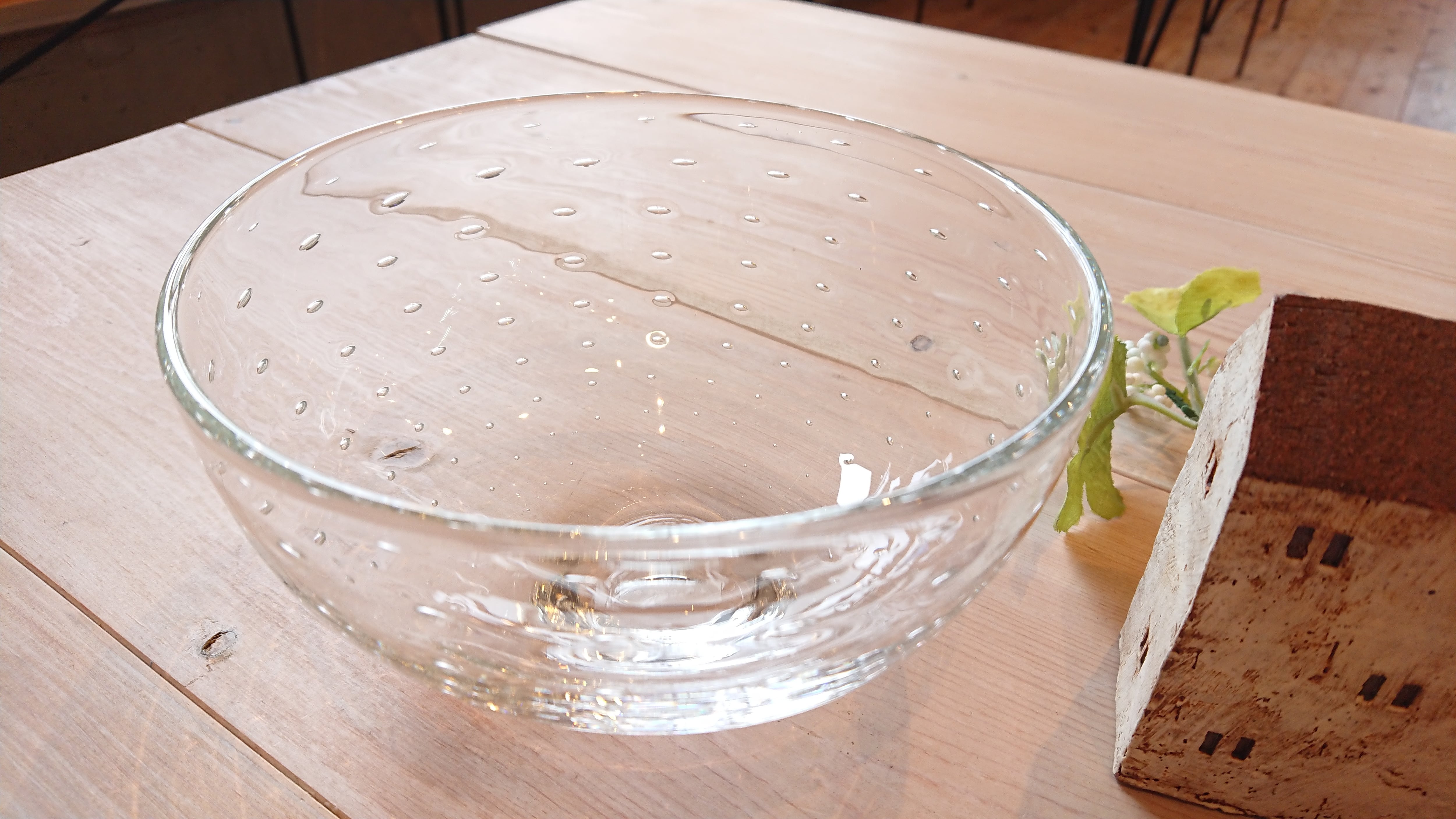 気泡が一定間隔で入れてあり、シンプルで使いやすいサラダボールです。