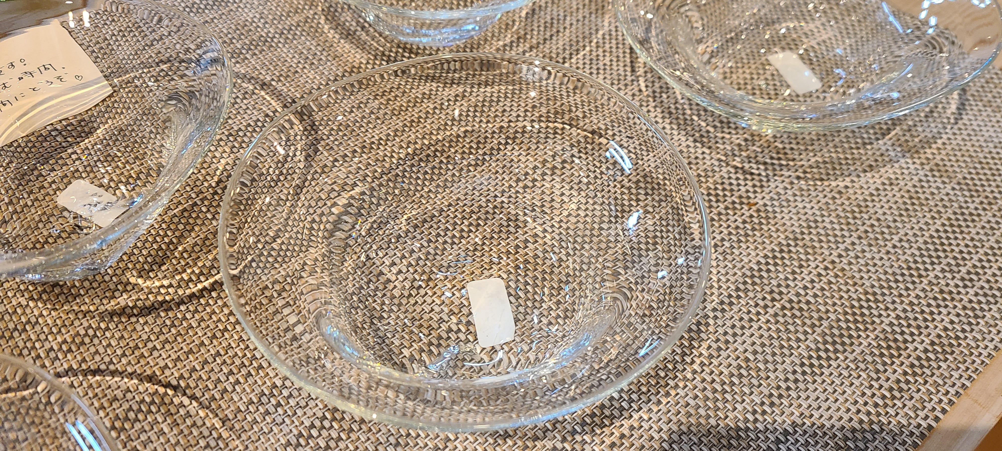 やわらかいフォルムでガラスの厚みが違うため伸びが違いやわらかく自然にガラスが拡がっている小鉢になります