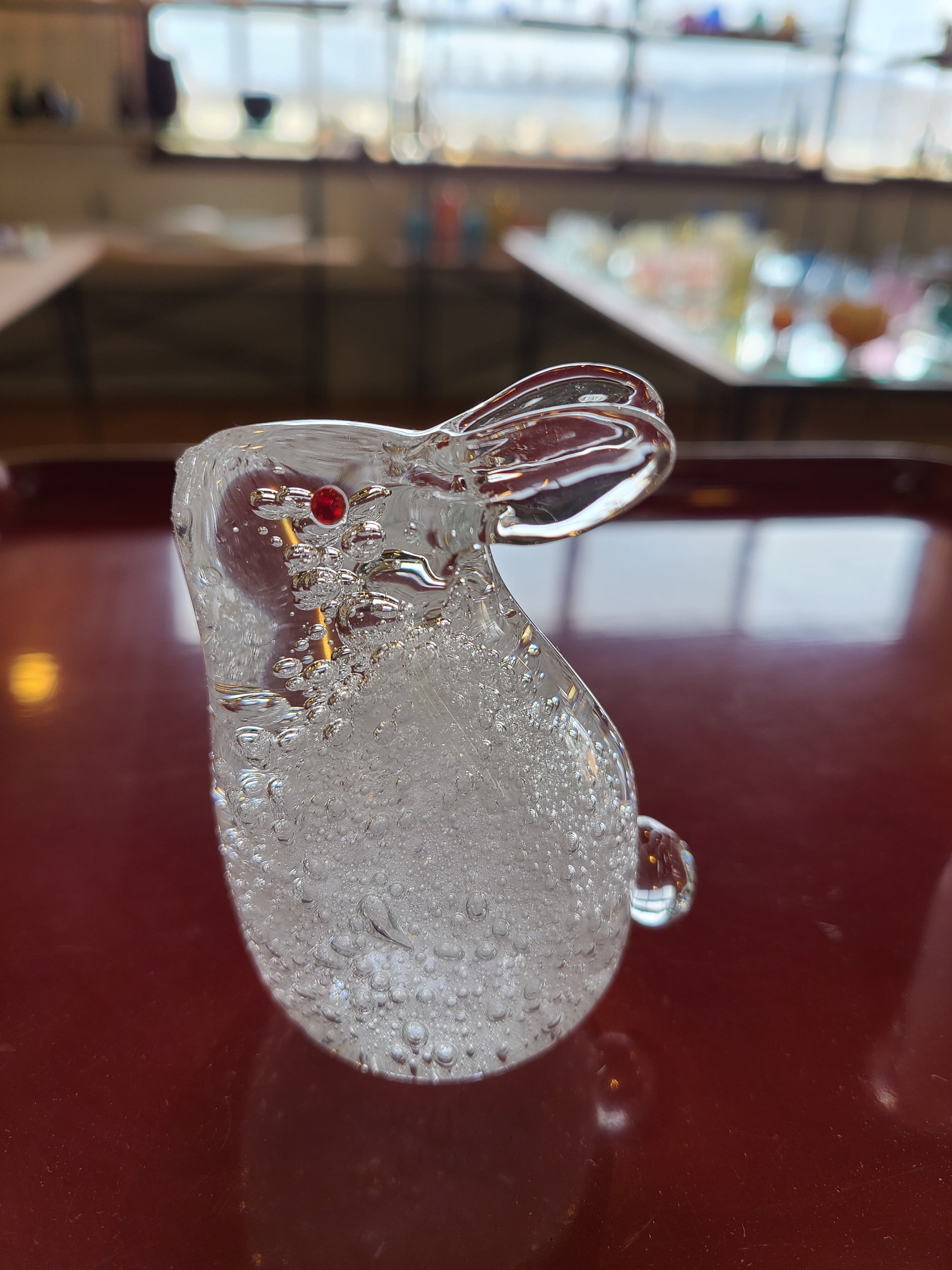 ガラスの中に泡を閉じ込めてガラスらしさがあるうさぎです