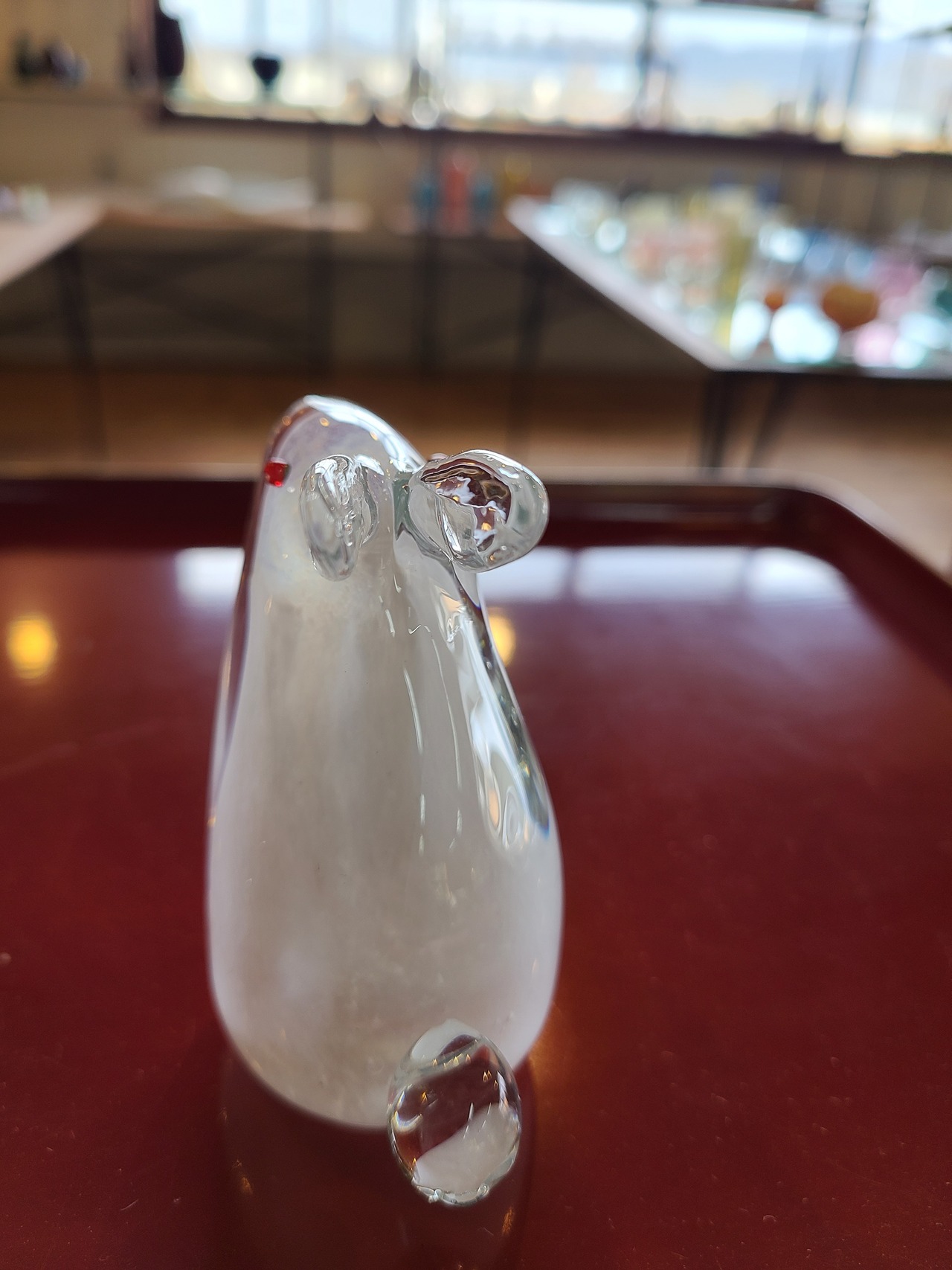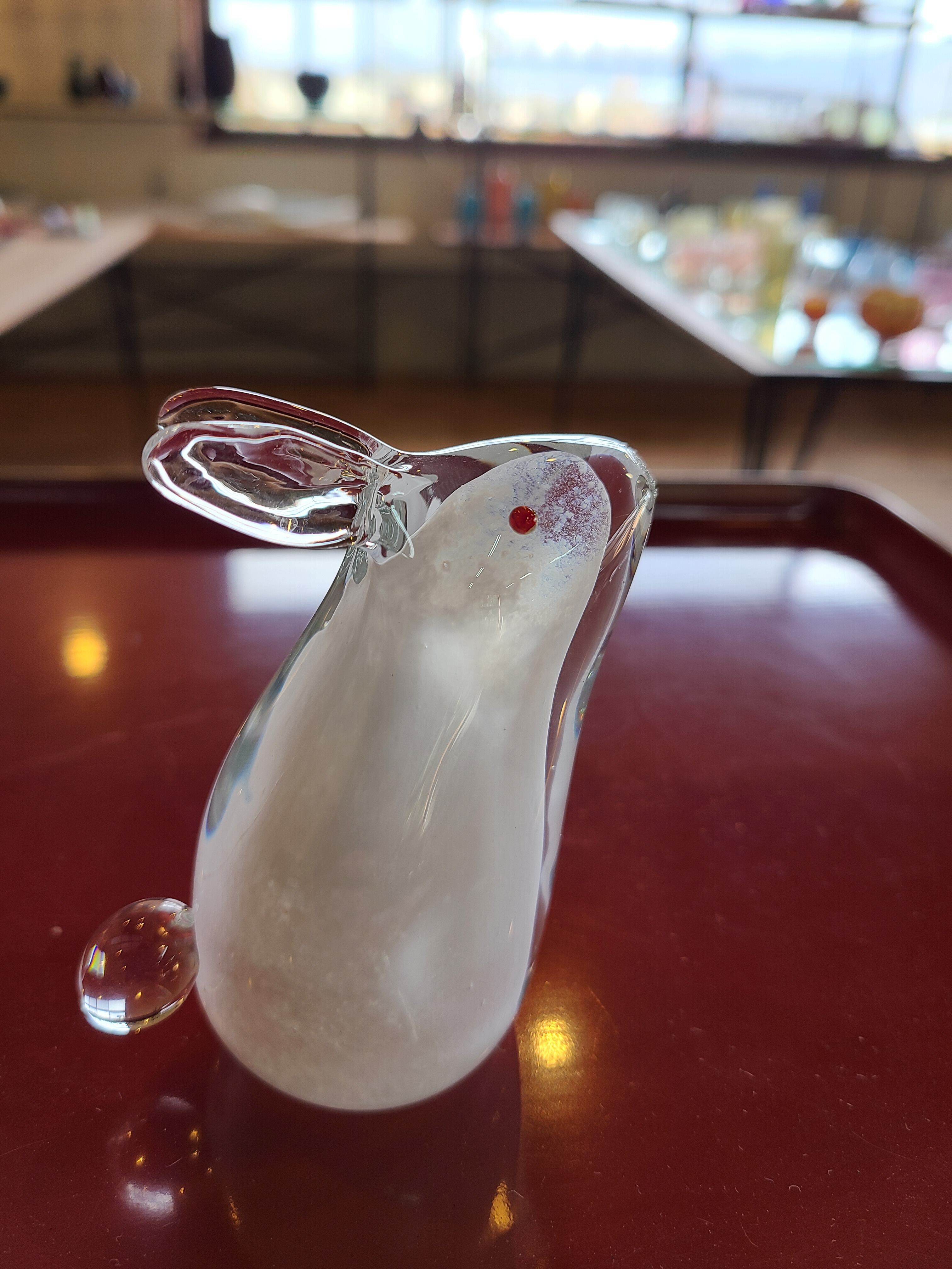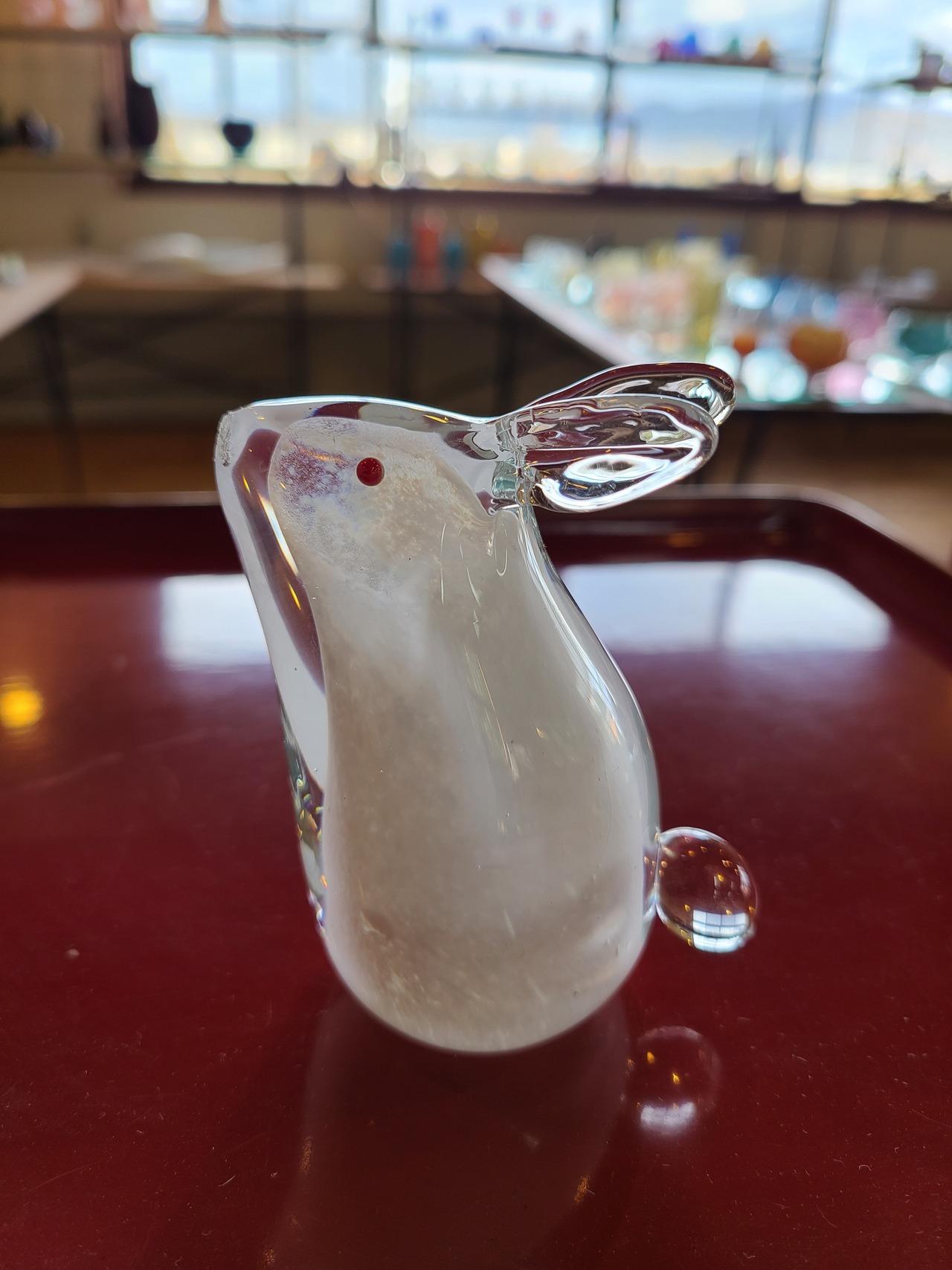 ガラスの中に白色のガラスを閉じ込めてあり、うさぎのかわいさを表現しております