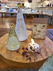 クリアのガラスにグリーンのガラスをがキラキラと輝き、見ているだけで幸せな気分になります